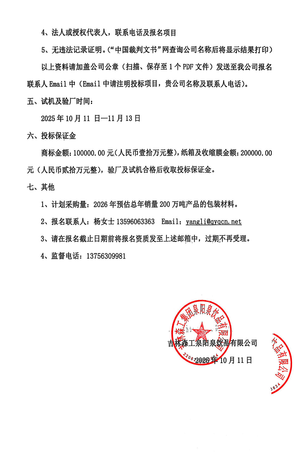 包材招標(biāo)公告